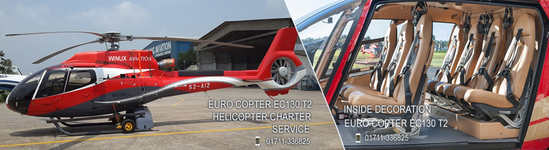 Booking: (1.) Booking will be done by E-mail or mobile call and payment cash at office. (2.) Your request should include the following information: • Route • Date of departure. • Time of departure. • Passenger list (if passenger list include foreigners, their nationality, passport number, validity of passport to be mentioned) with occupation, address and telephone numbers. Terms of payments: 1. Written request for helicopter Rental service with 50% of the total cost Advance, Rest 50% to be paid 72 hours before the flight 2. Please make payment in cash. Security: 1. Chatterer is to ensure security if the Helicopter landing area (while on ground) 2. A flag is to be hoisted close to the landing area (on top of the high tree/building /bamboo ) Cancellation: 1*. 36 hours before the flight schedule - forfeiture of 50% of total cost.2**. Within 24 hours prior to flight schedule - forfeiture of 90% of total cost. ***3. Please try to conform booking minimum 20 days before. Normal cancellation fee 35% Total mission coast Note:- 1. Flight may be delayed or cancelled due to bad weather, technical reasons or unavoidable circumstances. 2. Delay at the air port during departure (for delay in the passenger's arrival) will be counted as ground waiting. For additional information do not hesitate to call. Cell: +88-01711336825 for Reservation Helicopter rent Bangladesh for Emergency issue,70000/= per hour flying Time and 10000/= per hour standing time. Contact Website : www.helicopterbd.com Or www.helicopterbangladesh.com Contact Number and Email Details For Booking: +8801711336825, 01678076363 helicopterbd@gmail.com Or helicopterbangladesh@gmail.com |